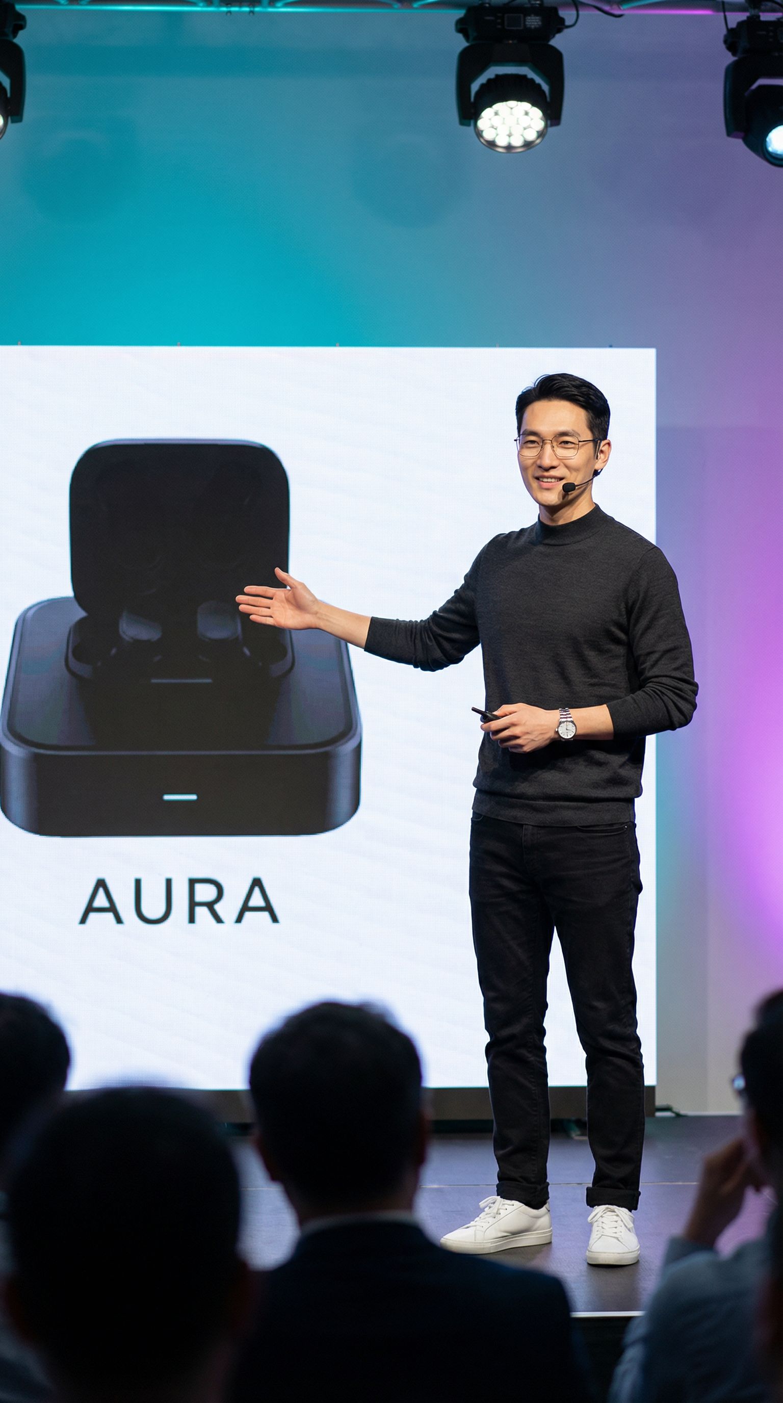 “launch day. stage lights, a thousand eyes, one product. three years to get here.”