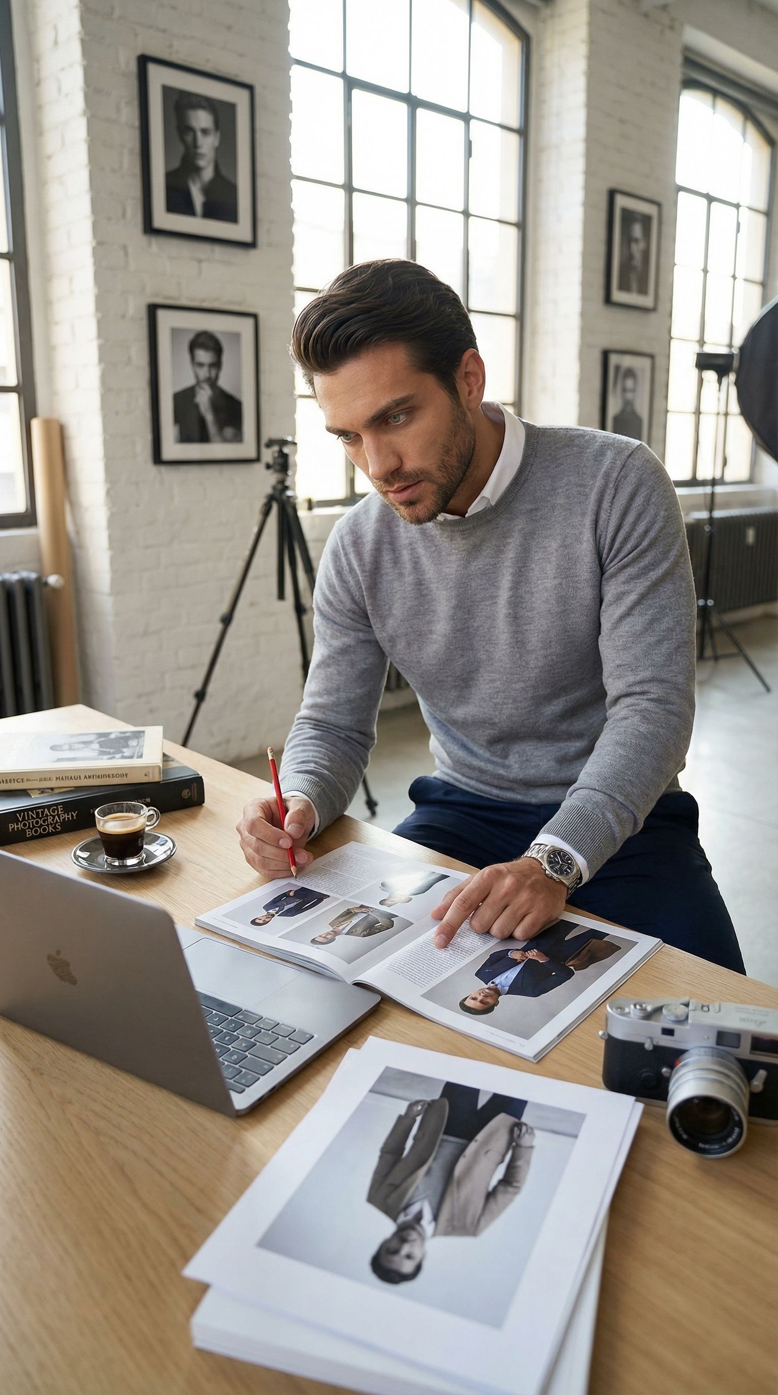 “reviewing spreads. the red pen is the most important tool in the room.”