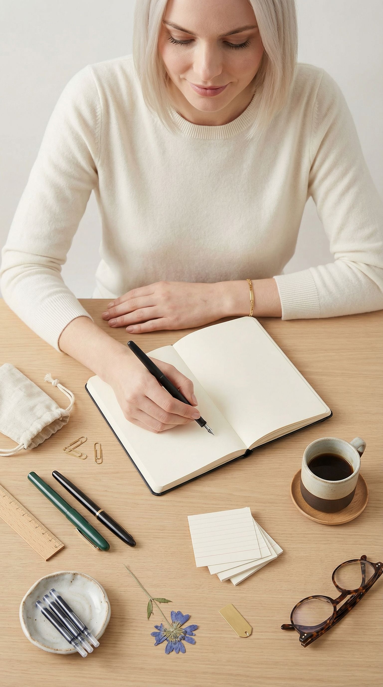 “brass clips, wooden ruler, one pen. some days the analog tools do more work than the apps.”