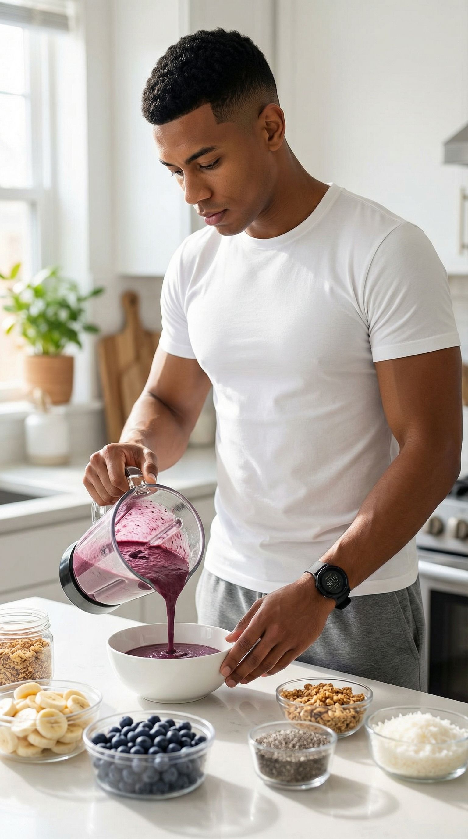 “smoothie bowl. banana, acai, a little too much granola. post-run fuel that's honestly half dessert.”
