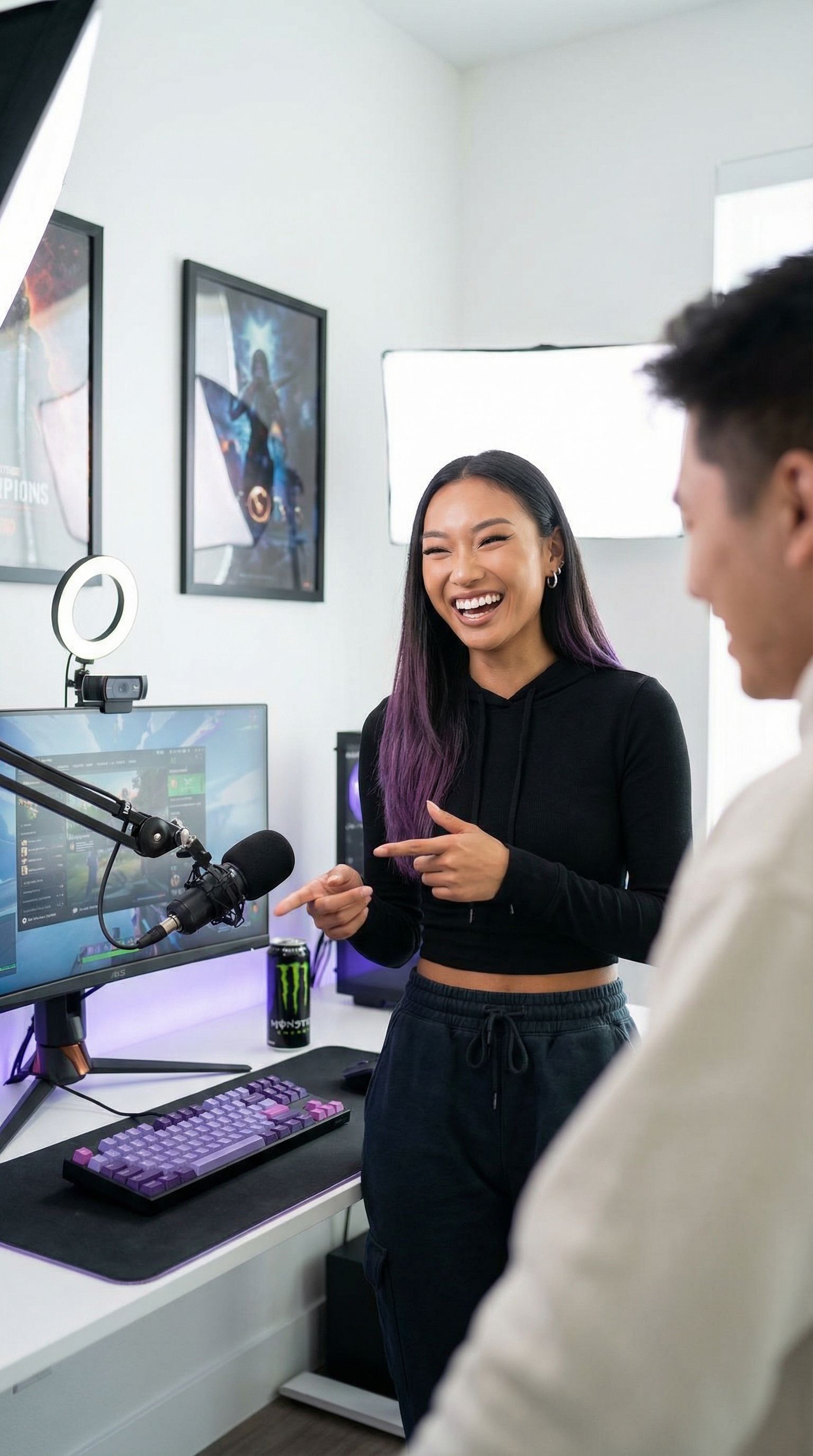 “collab day. two setups, one room, maximum chaos. the content writes itself.”