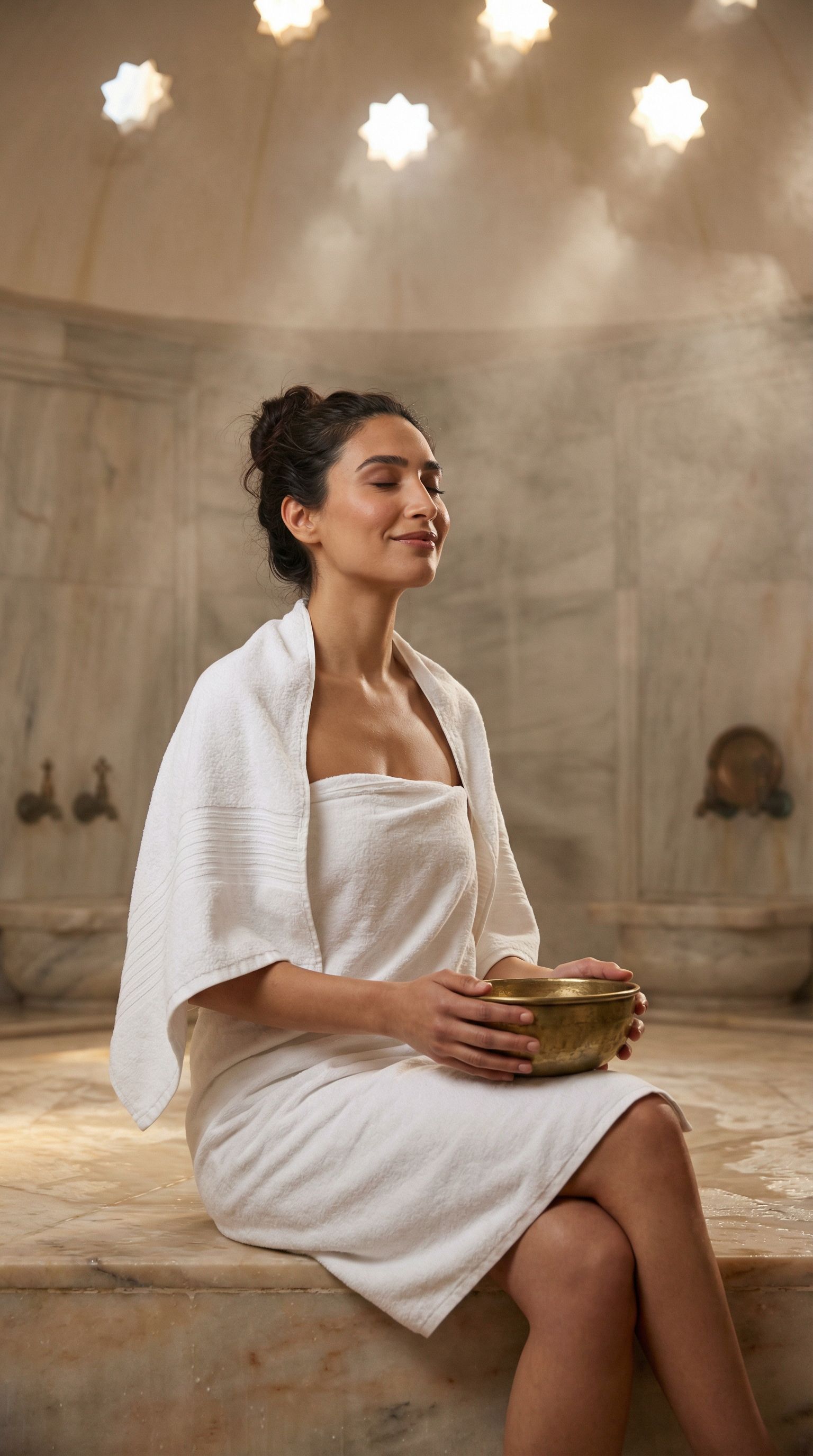 “hamam steam, marble, quiet. şifa starts with the water.”