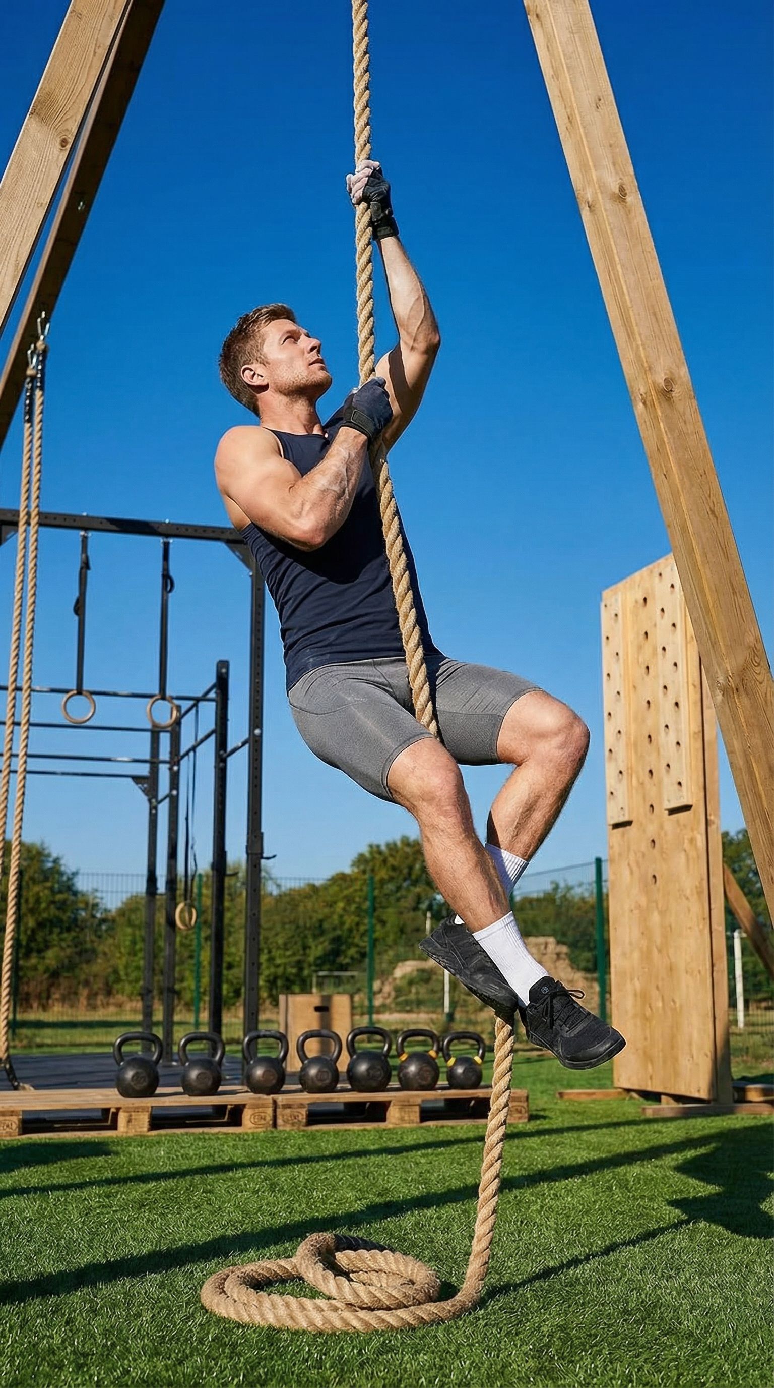 “legs wrap, hands pull, head quiet. rope doesn't climb itself.”