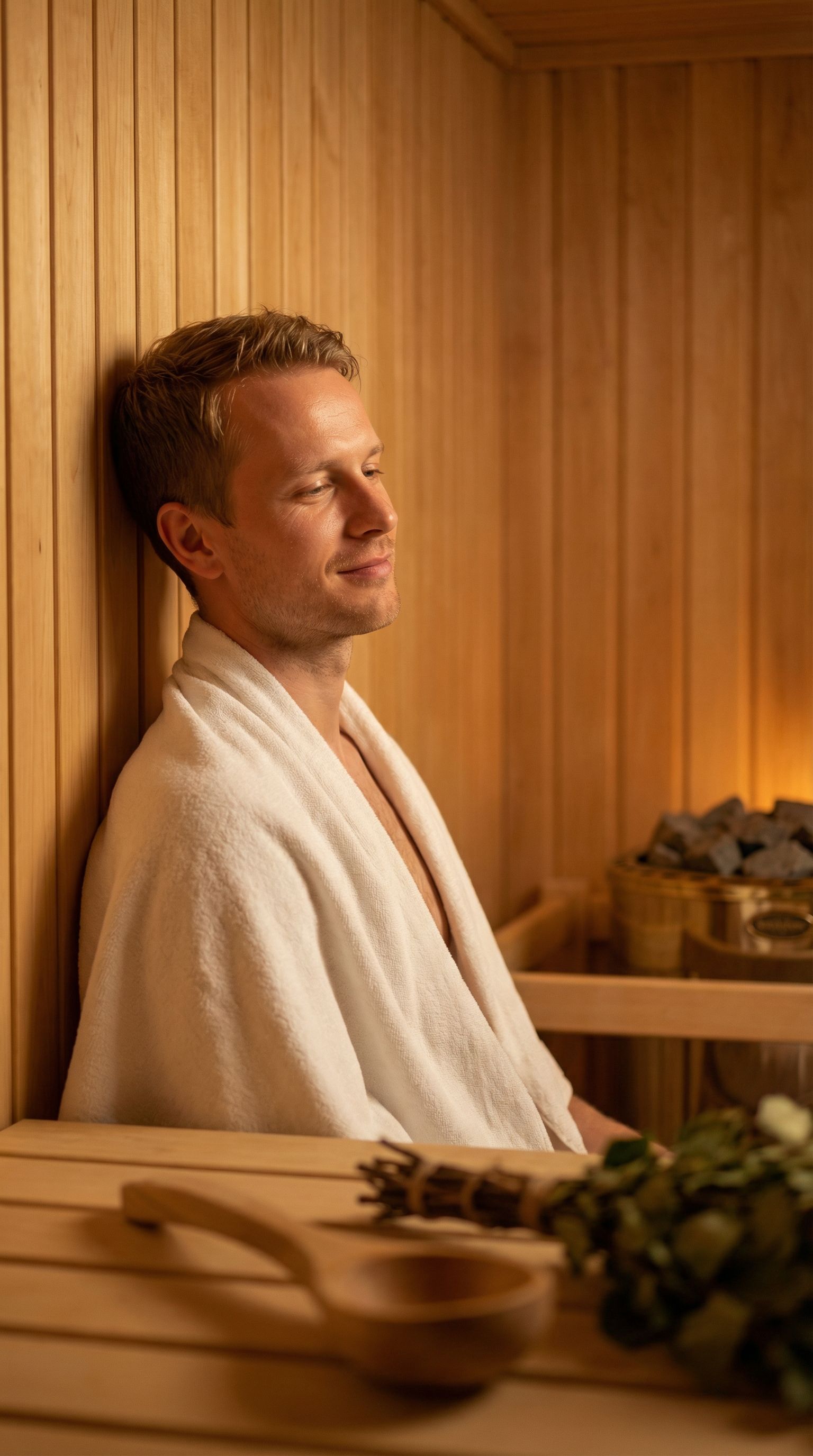 “sauna, spruce slats, no thoughts. this is the scandinavian reset button.”