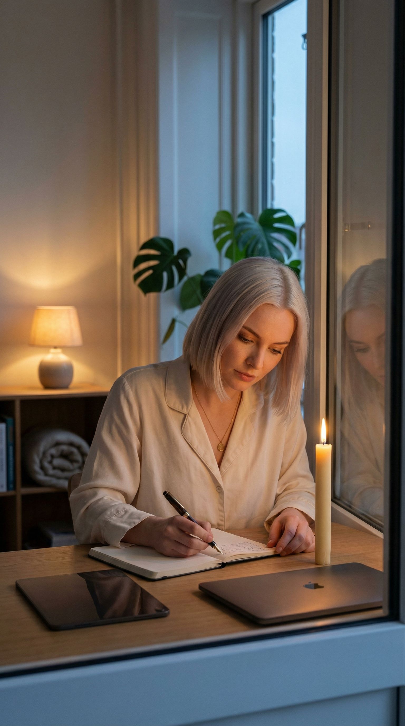 “candle lit, laptop closed. fika is a design choice.”