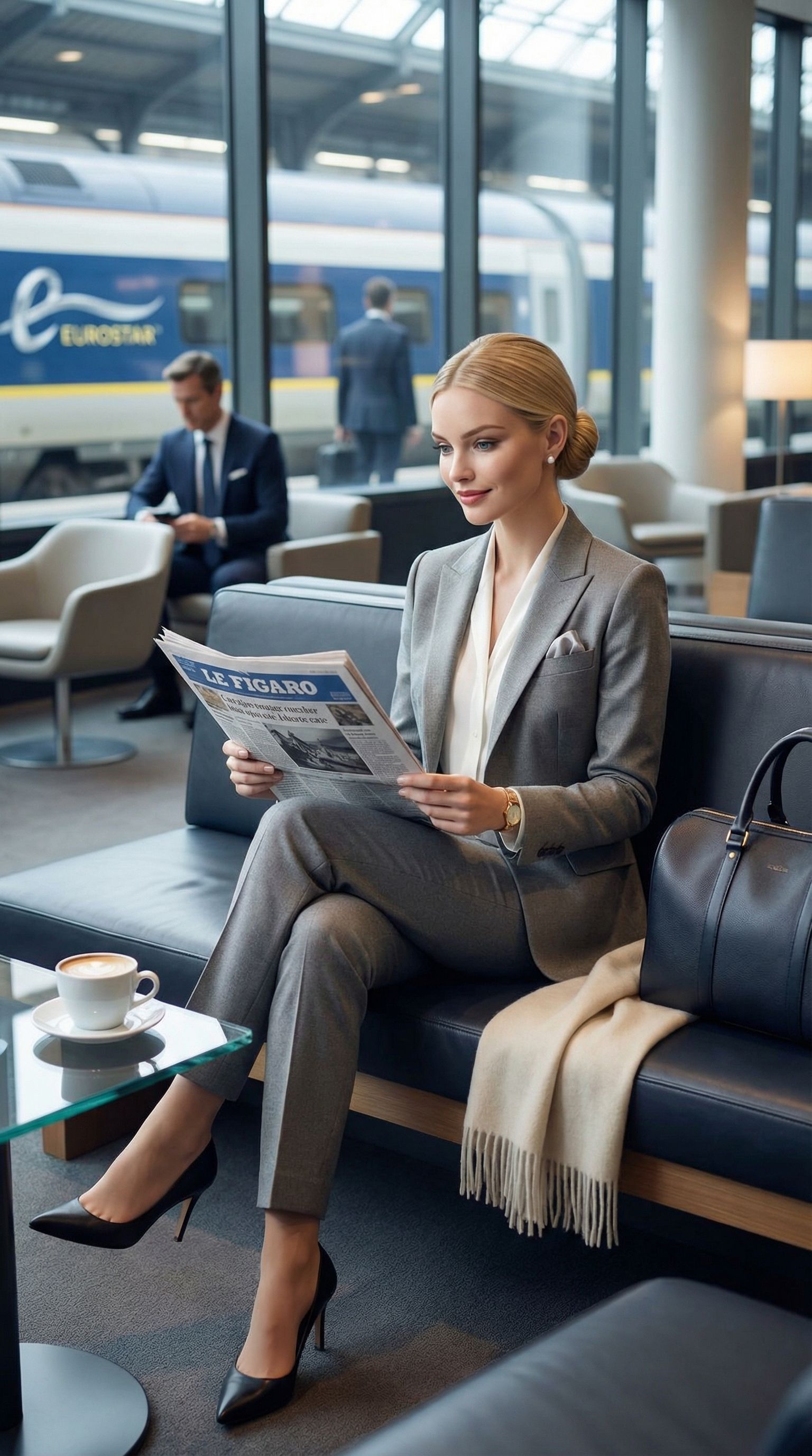 “the lounge is quiet. le figaro, a café crème, and the 14:22 to london.”