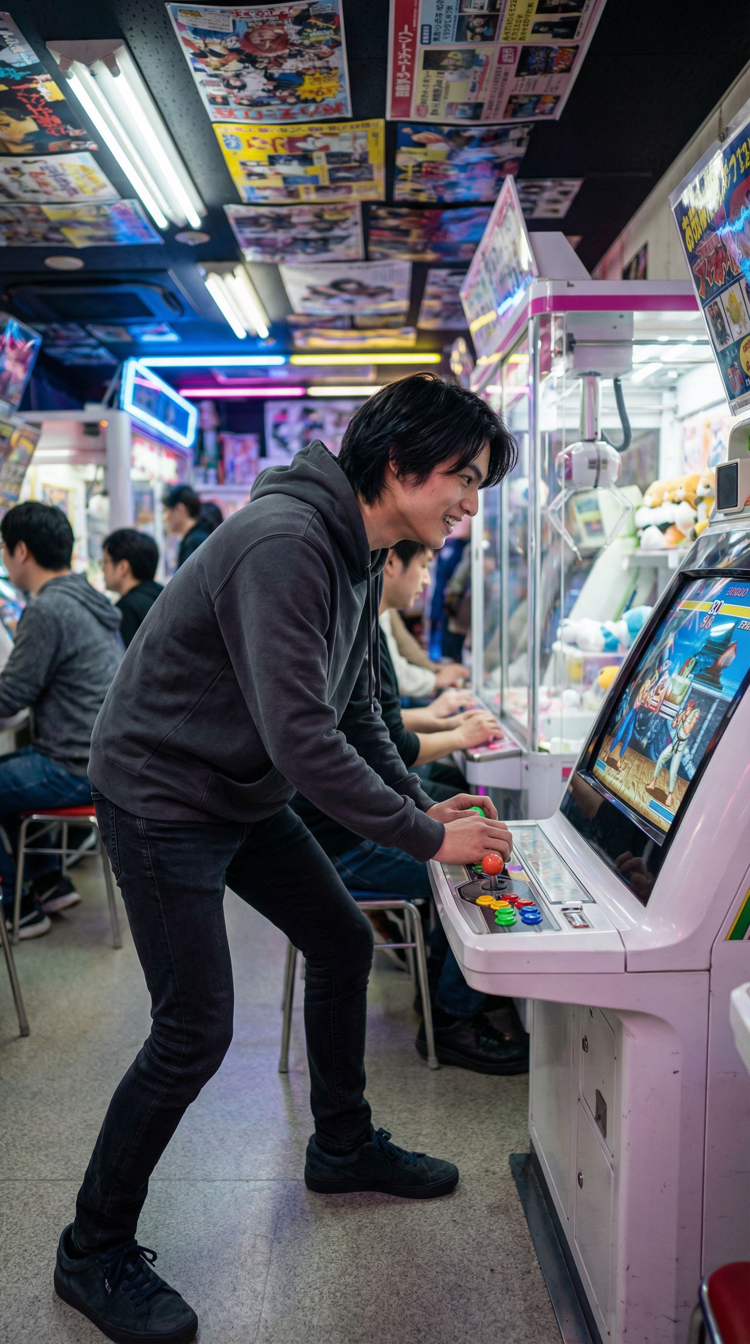 “game center in tokyo. found the cabinet. lost to the cabinet. came back tomorrow.”