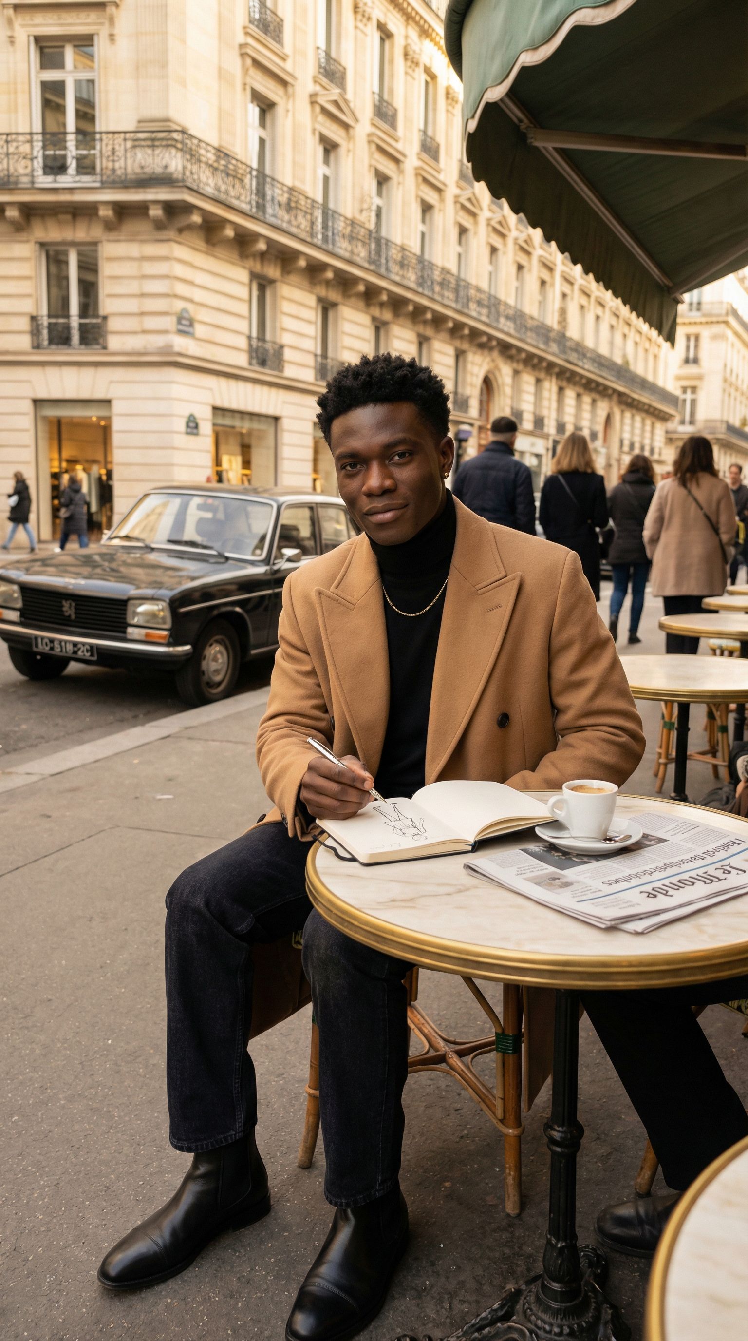 “sketch, espresso, an eiffel tower i'm ignoring on purpose. paris owed me a quiet hour.”