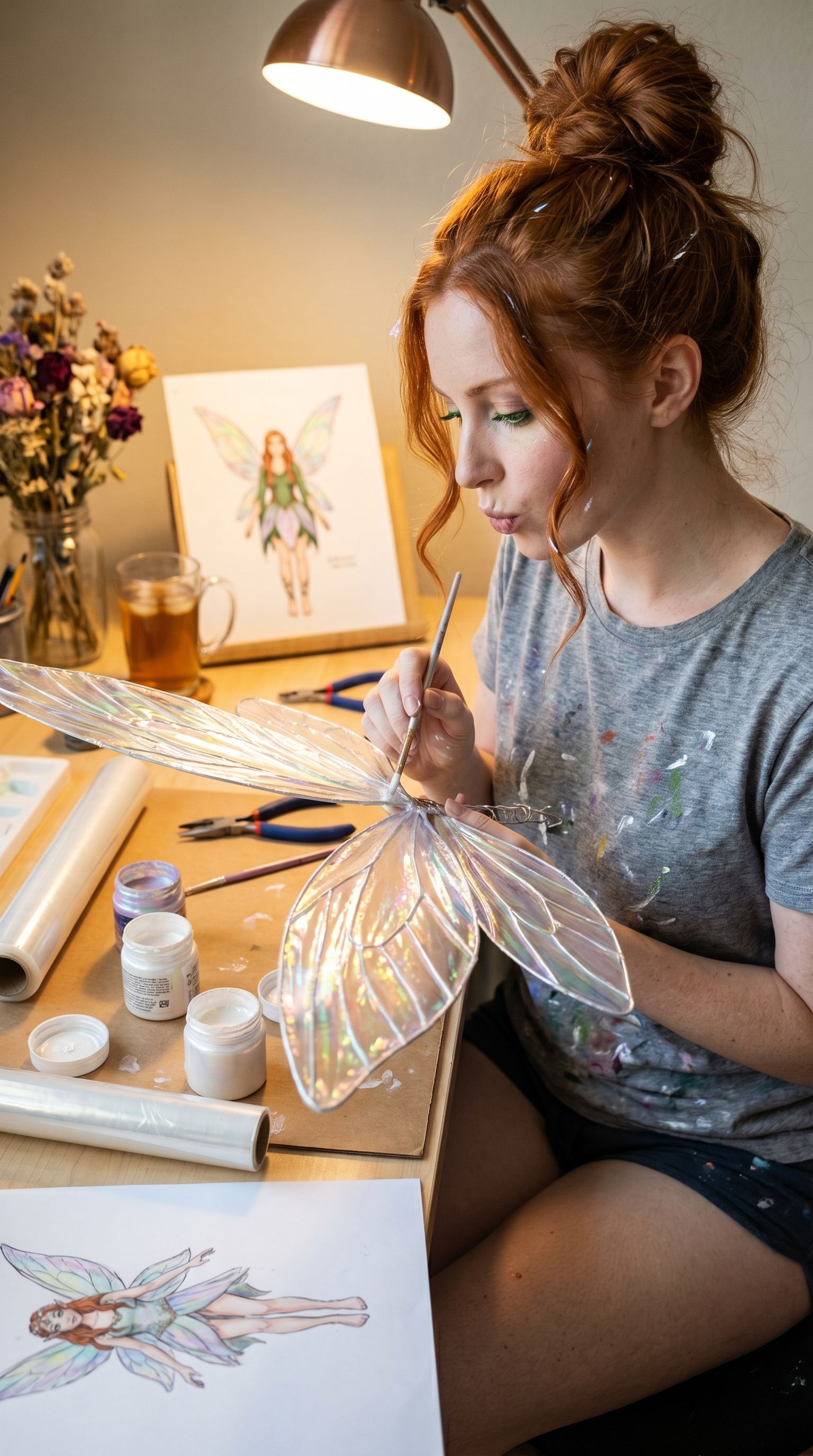 “painting the wings took longer than making them. but the shimmer. worth every hour.”