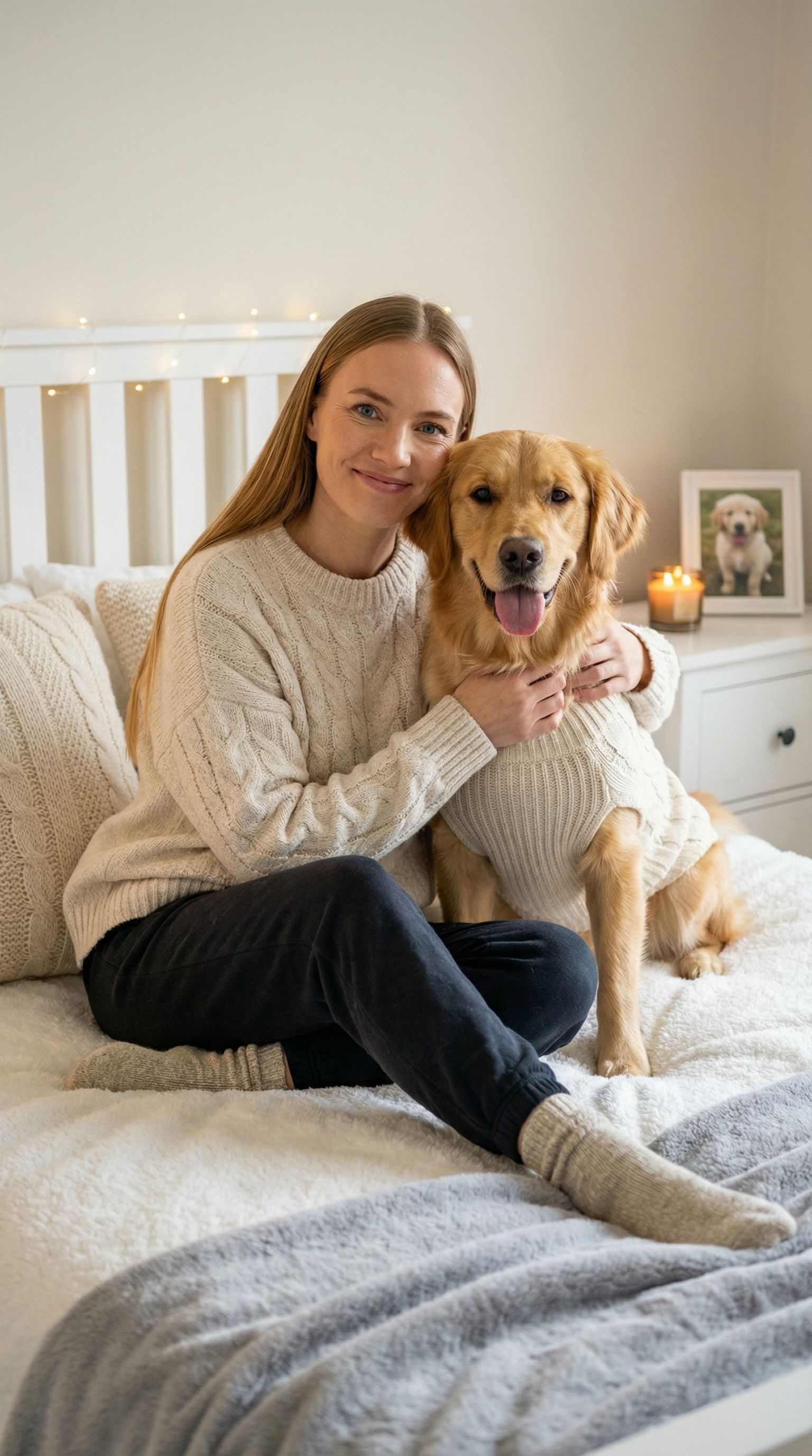 “matching sweaters. he didn't choose this life. but he looks great in it.”