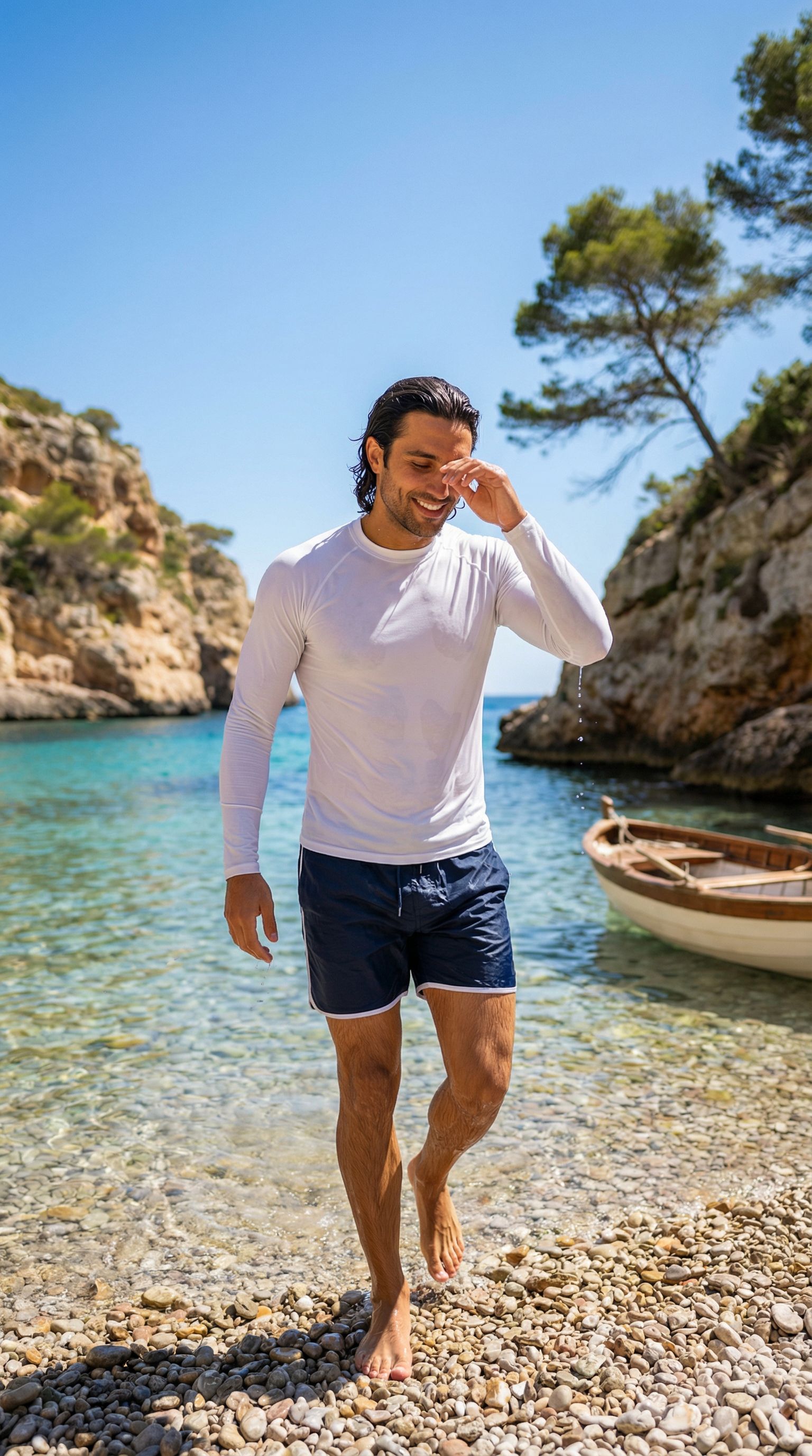 “hidden cove in mallorca. no wifi, no signal, no other footprints. that's the whole trip.”