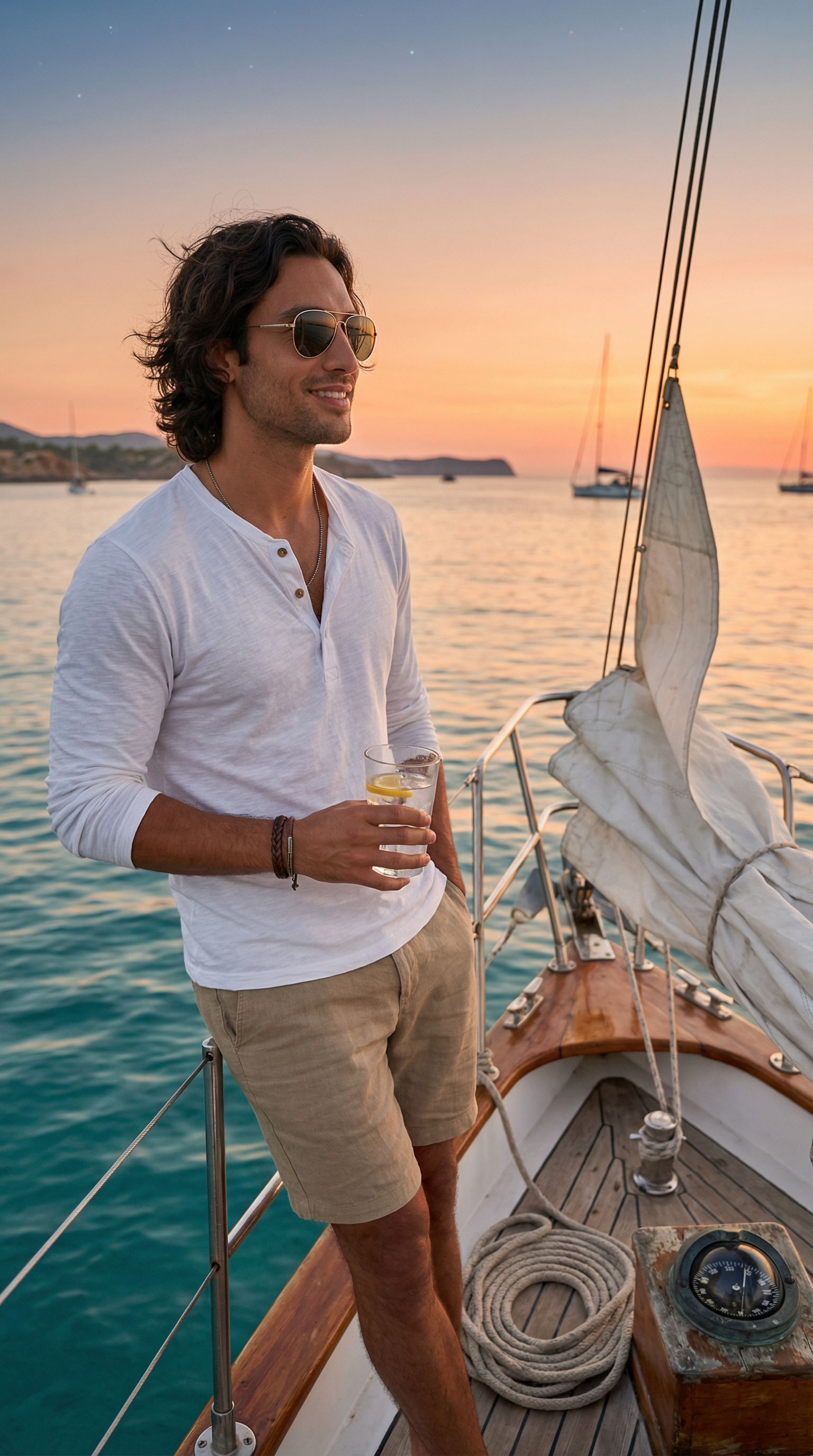 “sailboat off ibiza at golden hour. the sea always wins this hour.”