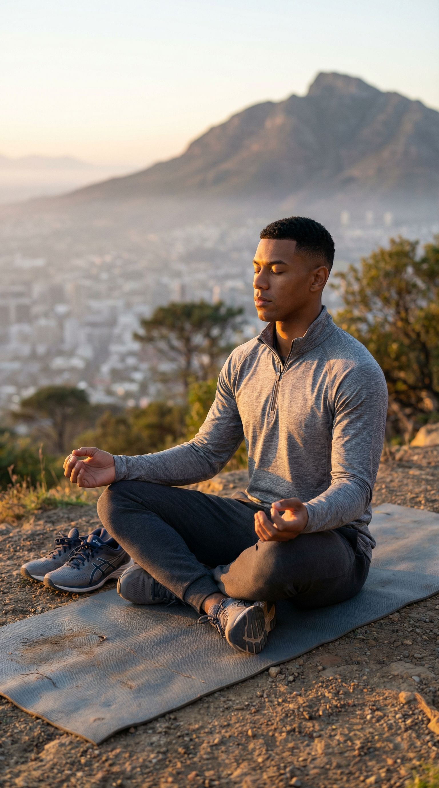 “eyes closed, sun on my face, city below. five minutes of nothing is the whole workout.”