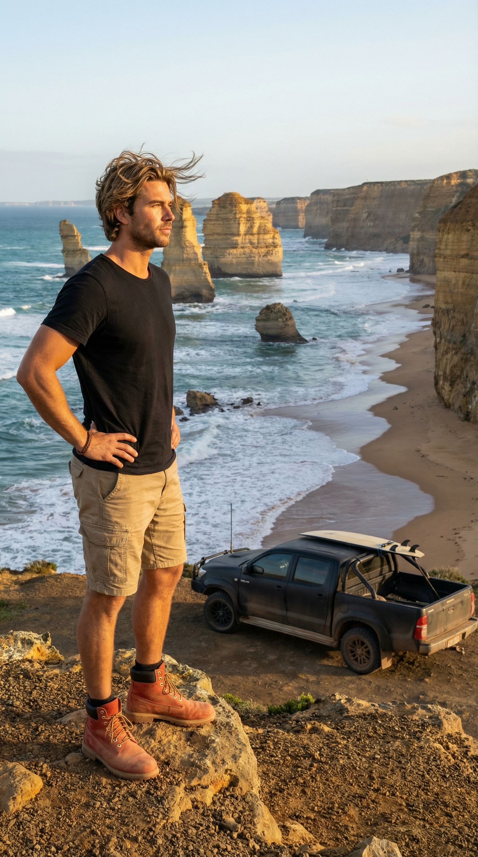 “great ocean road, great ocean mood. board in the tray, no plan past dinner.”