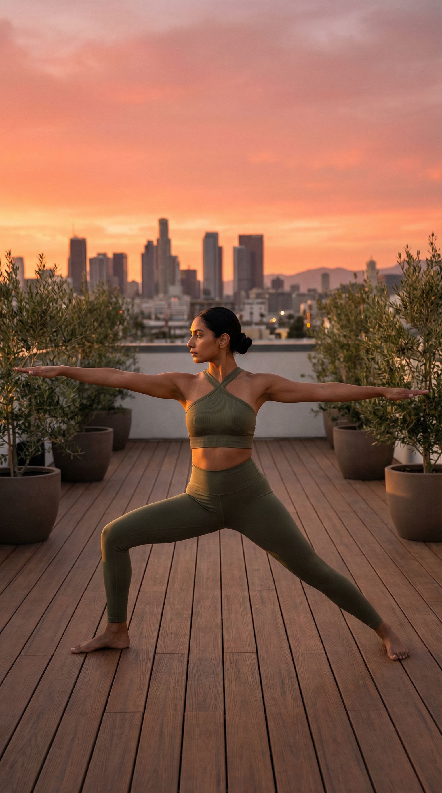 “warrior II, facing the light. the city exhales below, i exhale above. some days the sky does the teaching.”