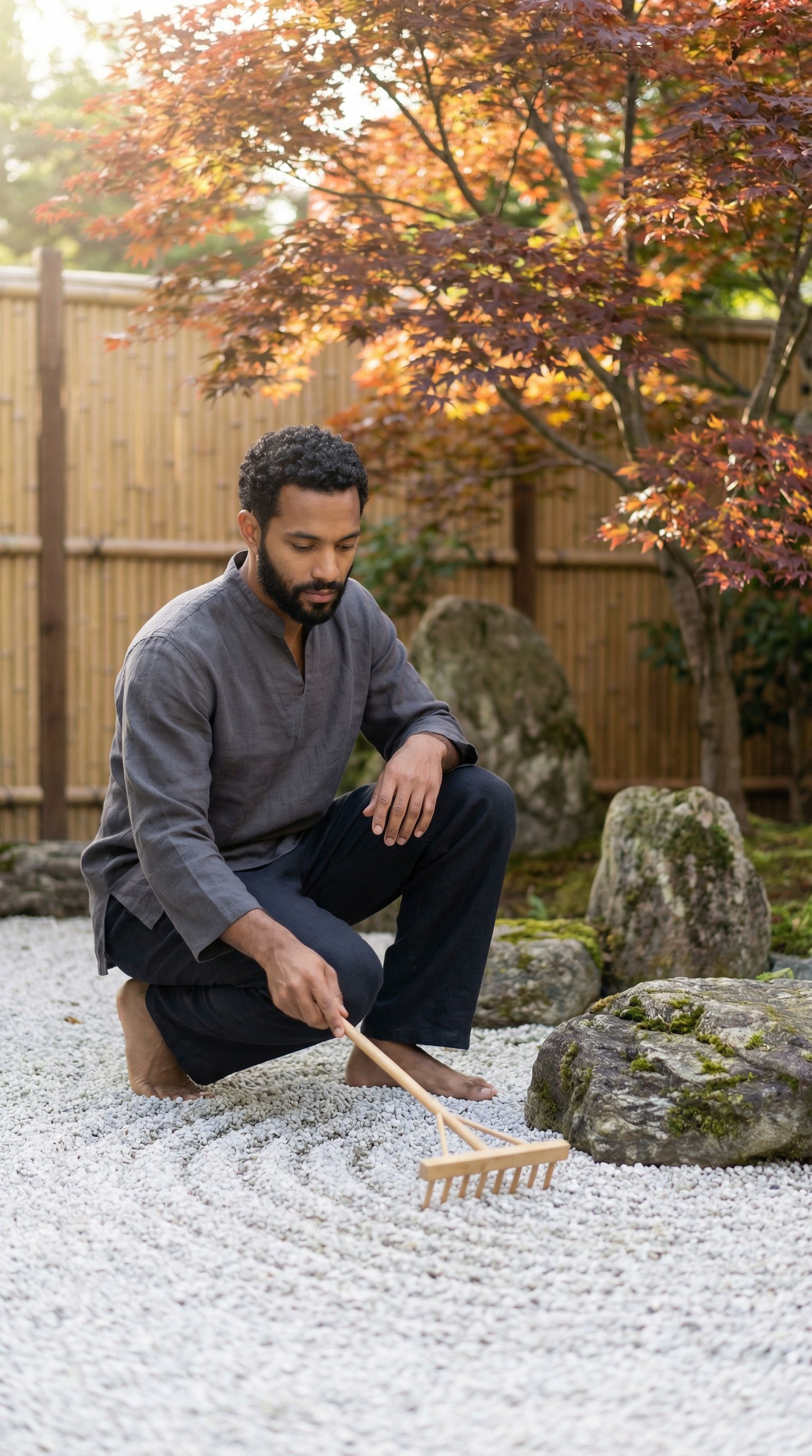 “raking the gravel in circles. the stones don't move. that's the lesson.”