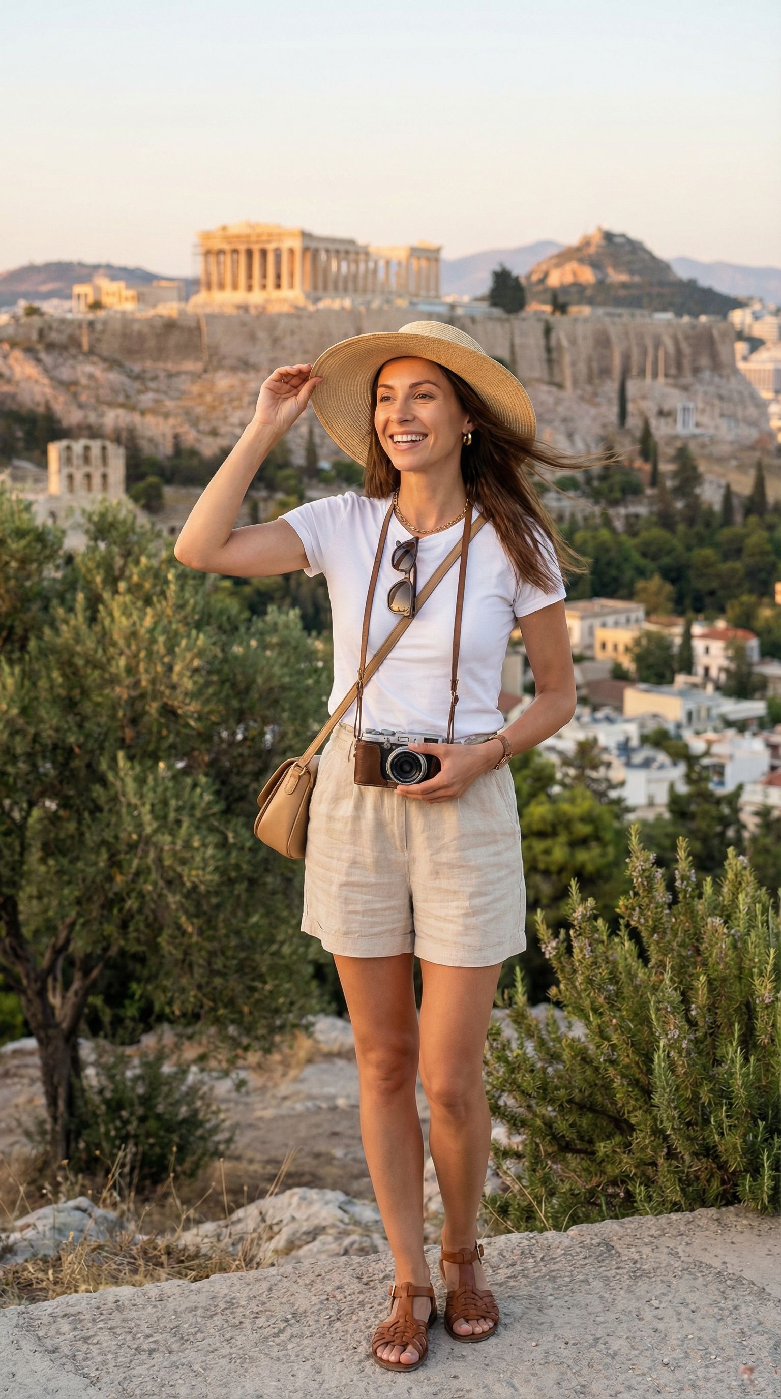 “acropolis at golden hour. 2,500 years old and the light still does it favors.”