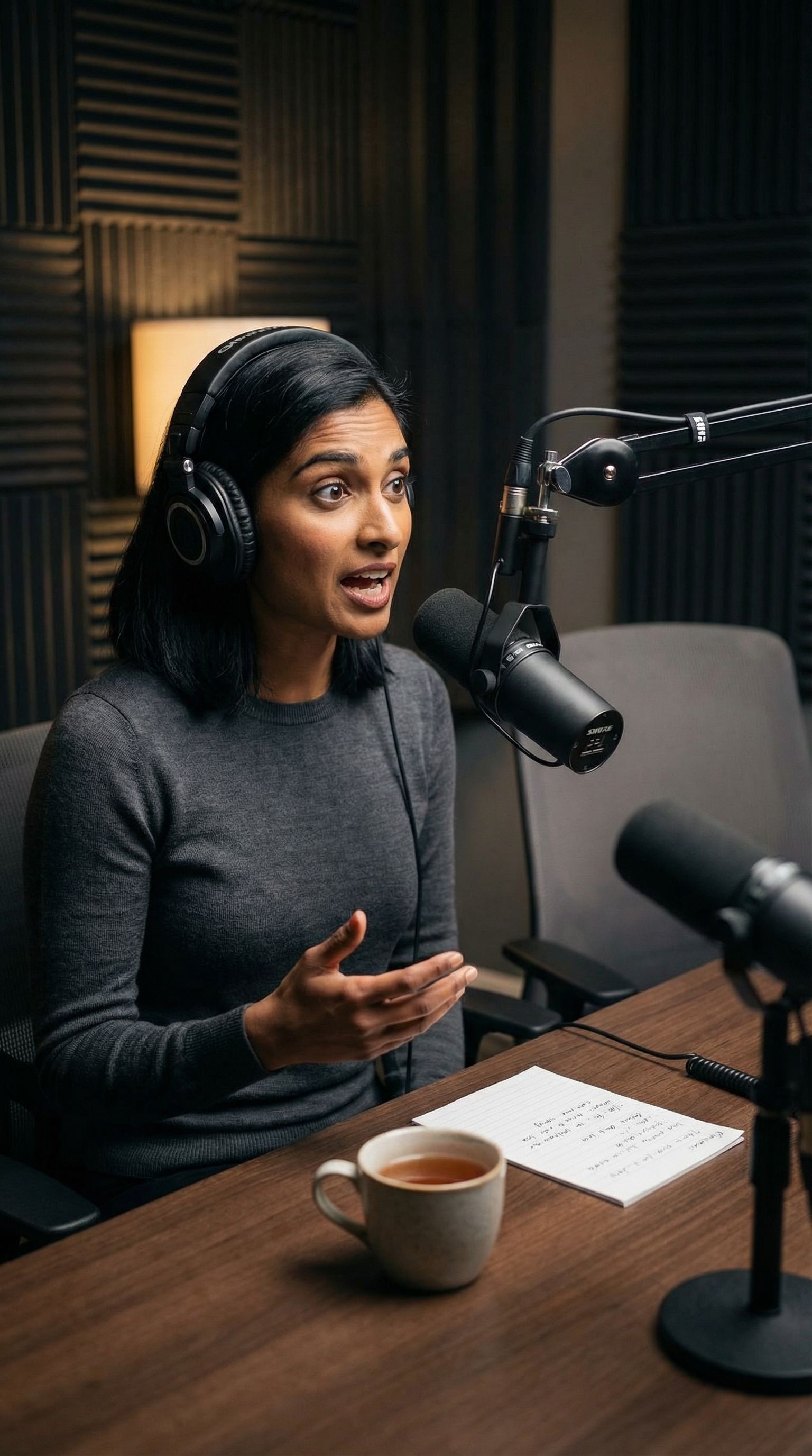 “podcast day. two mics, one idea, infinite tangents. coming soon wherever you scroll.”