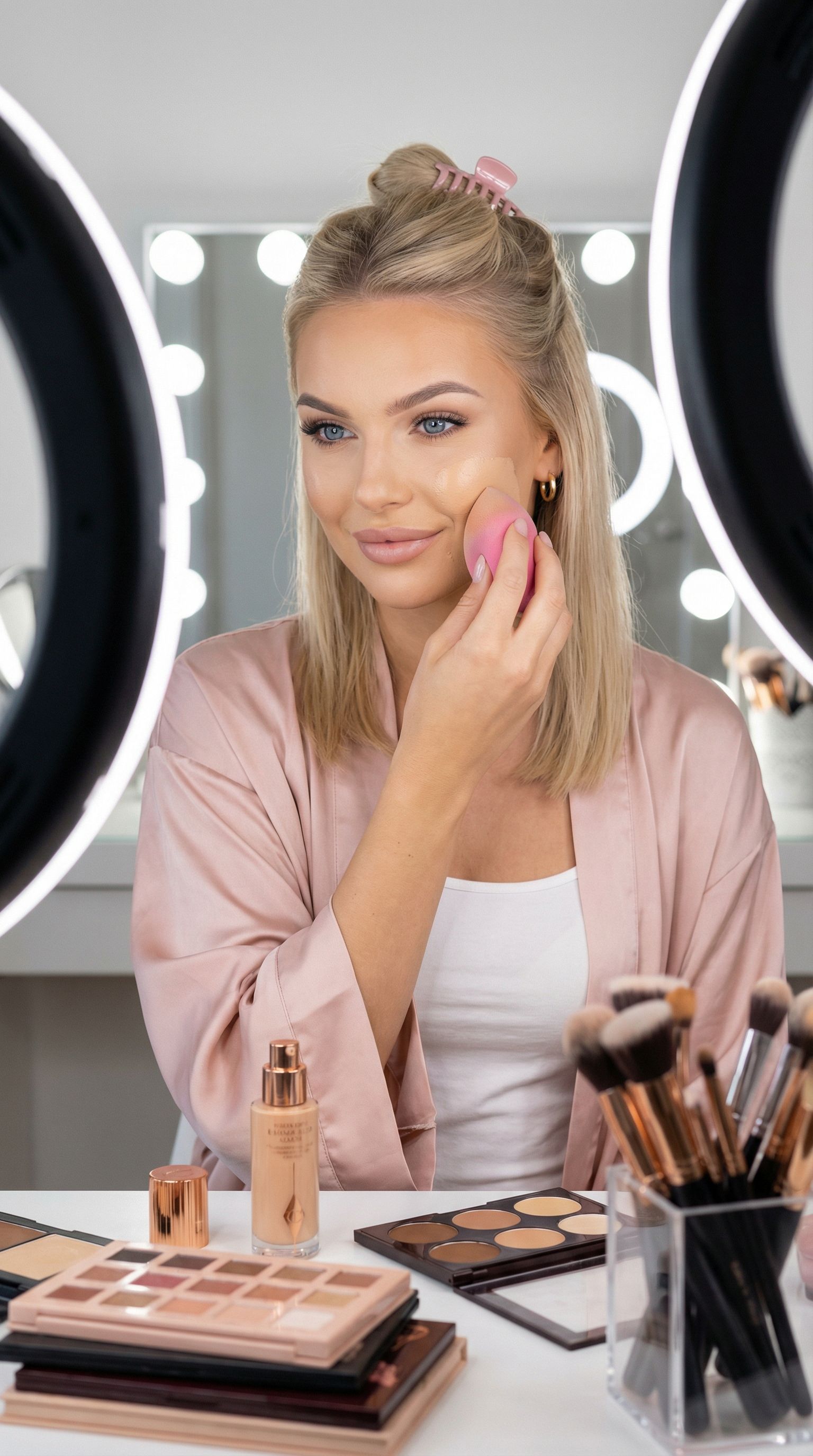 “grwm but make it slow. ring light on, problems off.”