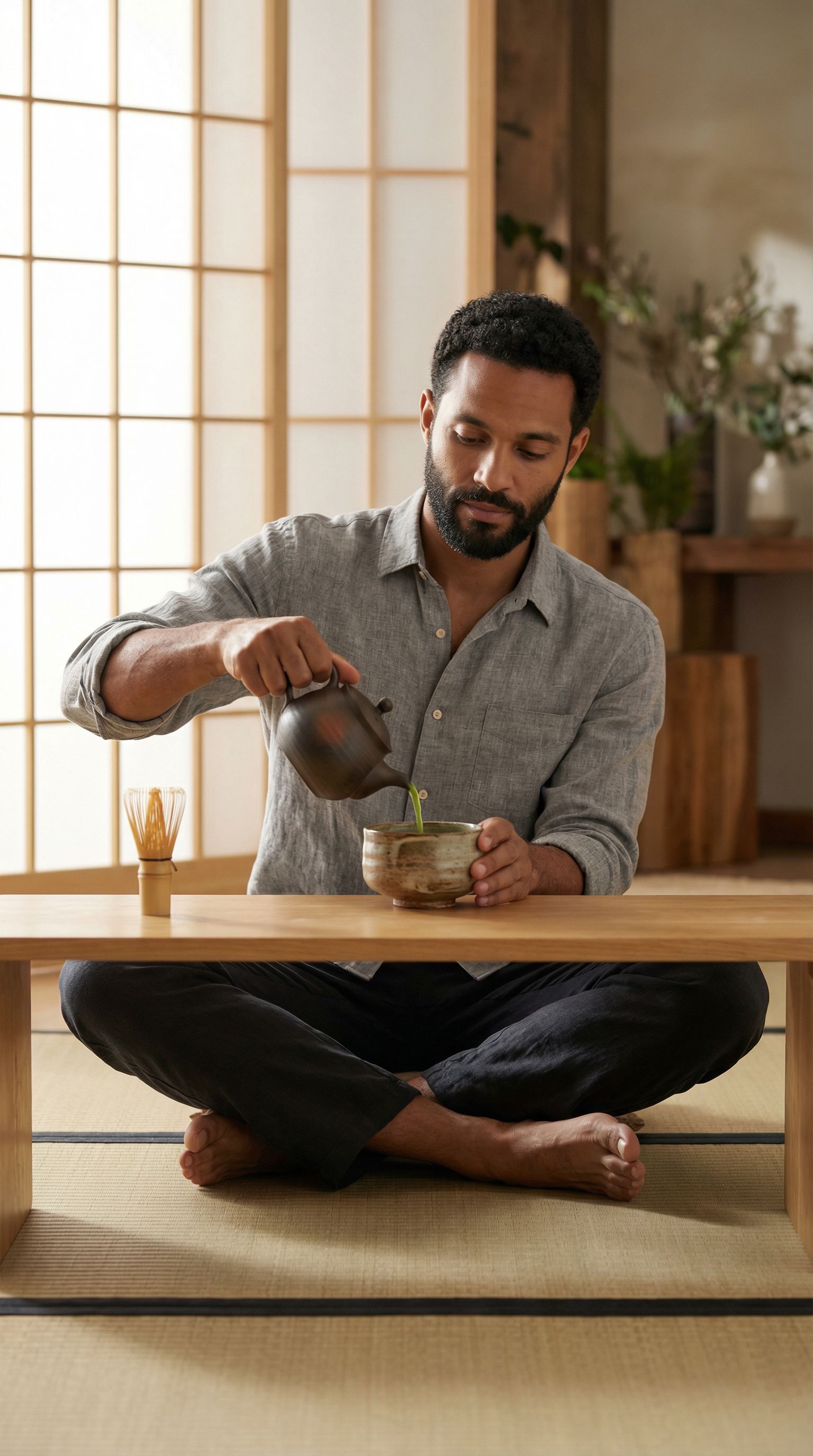 “matcha poured slowly. the retreat teaches you to stop teaching yourself.”