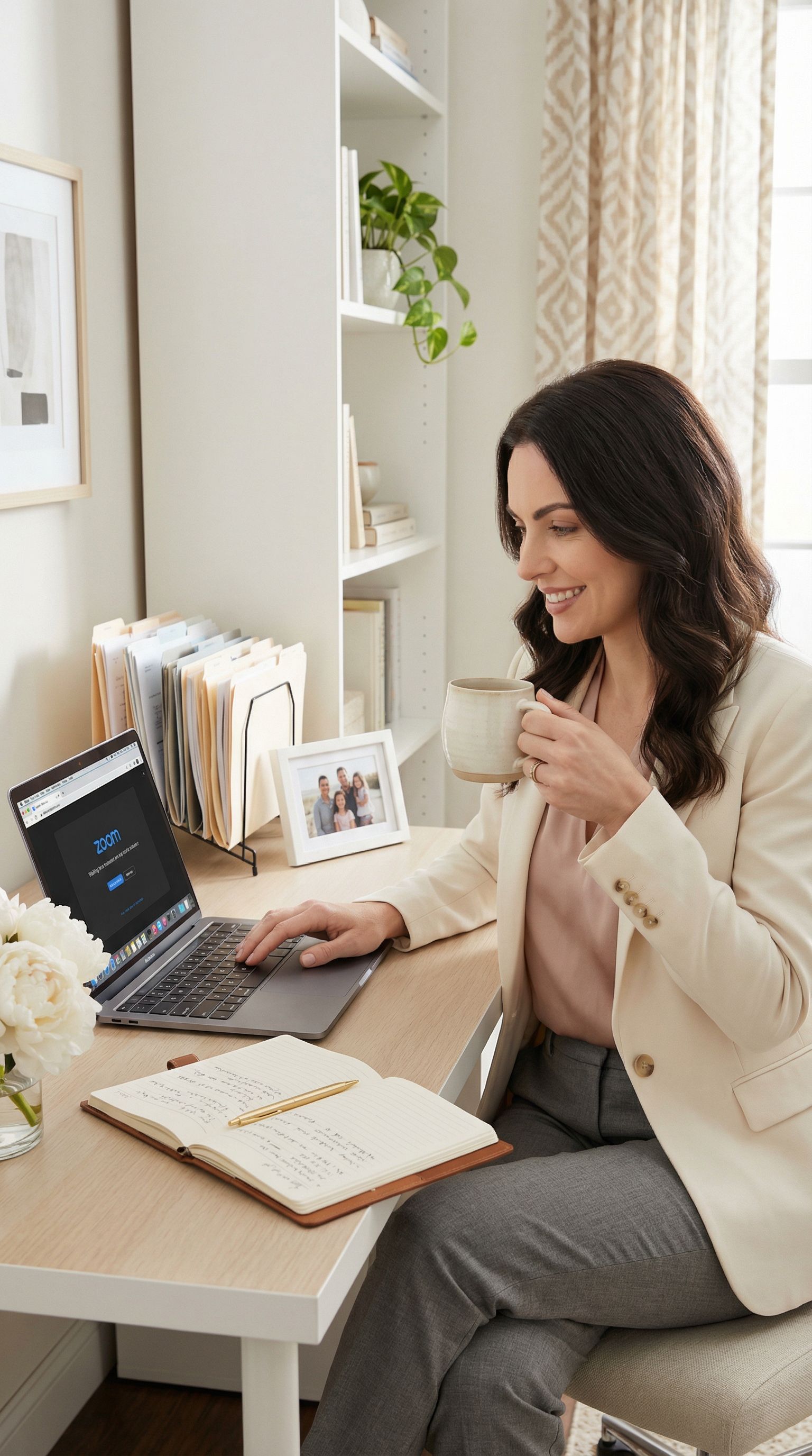 “zoom call in eight minutes. grabbed the blazer off the hanger. some days that's the whole skill.”
